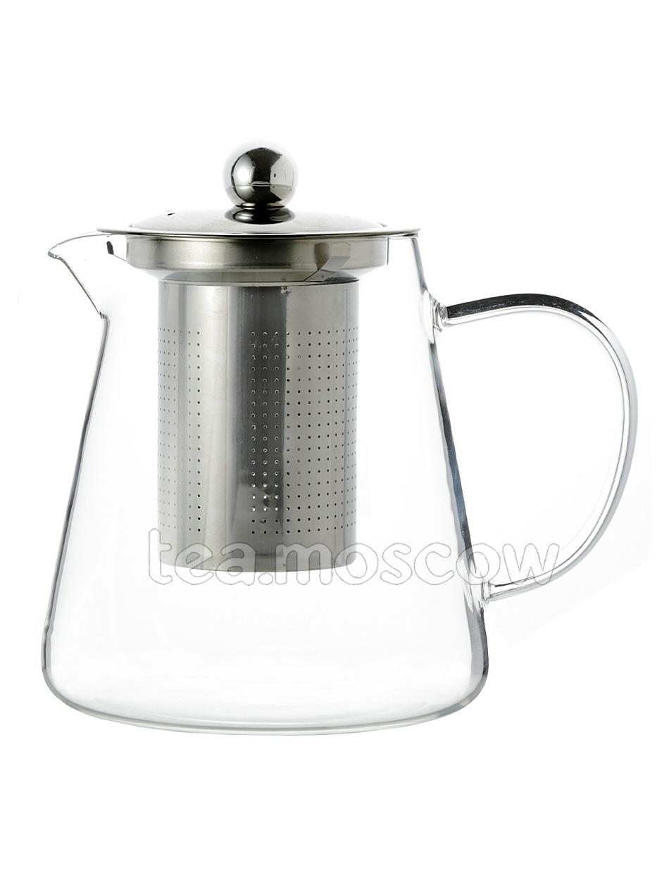 Чайник стеклянный с пластиковой крышкой и металлическим ситом 900 мл